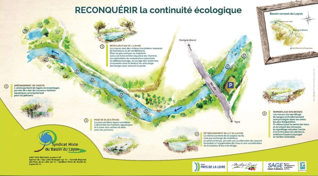 Aménagement de rivière, sentier de randonnée, sentier d’interprétation ou sentier de découvert, offrez aux promeneurs une compréhension du paysage, le contexte des aménagements proposés.